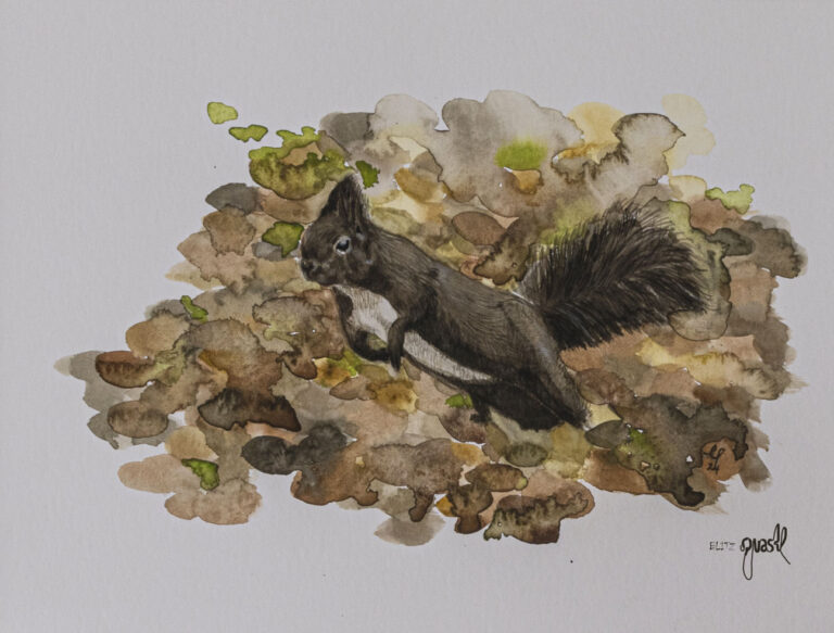 Aquarellbild Aus der Ausstellung „Tierische Helden“ in der Galerie Reichermühle in Rechnitz (Mai 24)