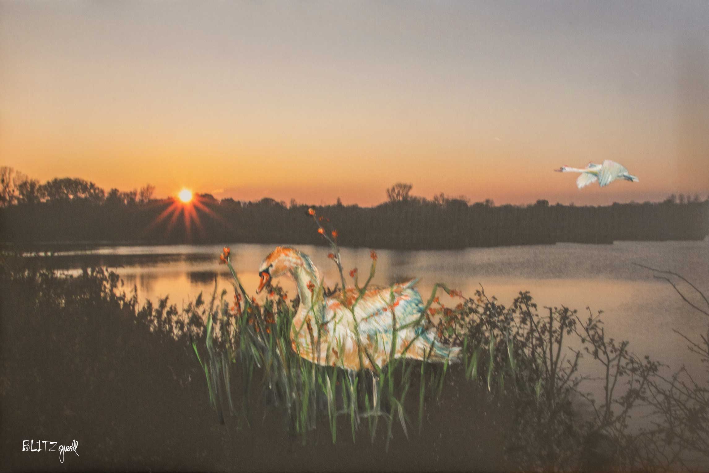 SchwanBlitzquastl15. April 2024Blitzquastl Acrylmalerei auf FotoDer Hintergrund dieses Bildes ist eine Fotografie, die auf Leinwand gedruckt wurde. Die Schwäne wurden dann als Acrylmalerei ergänzt.